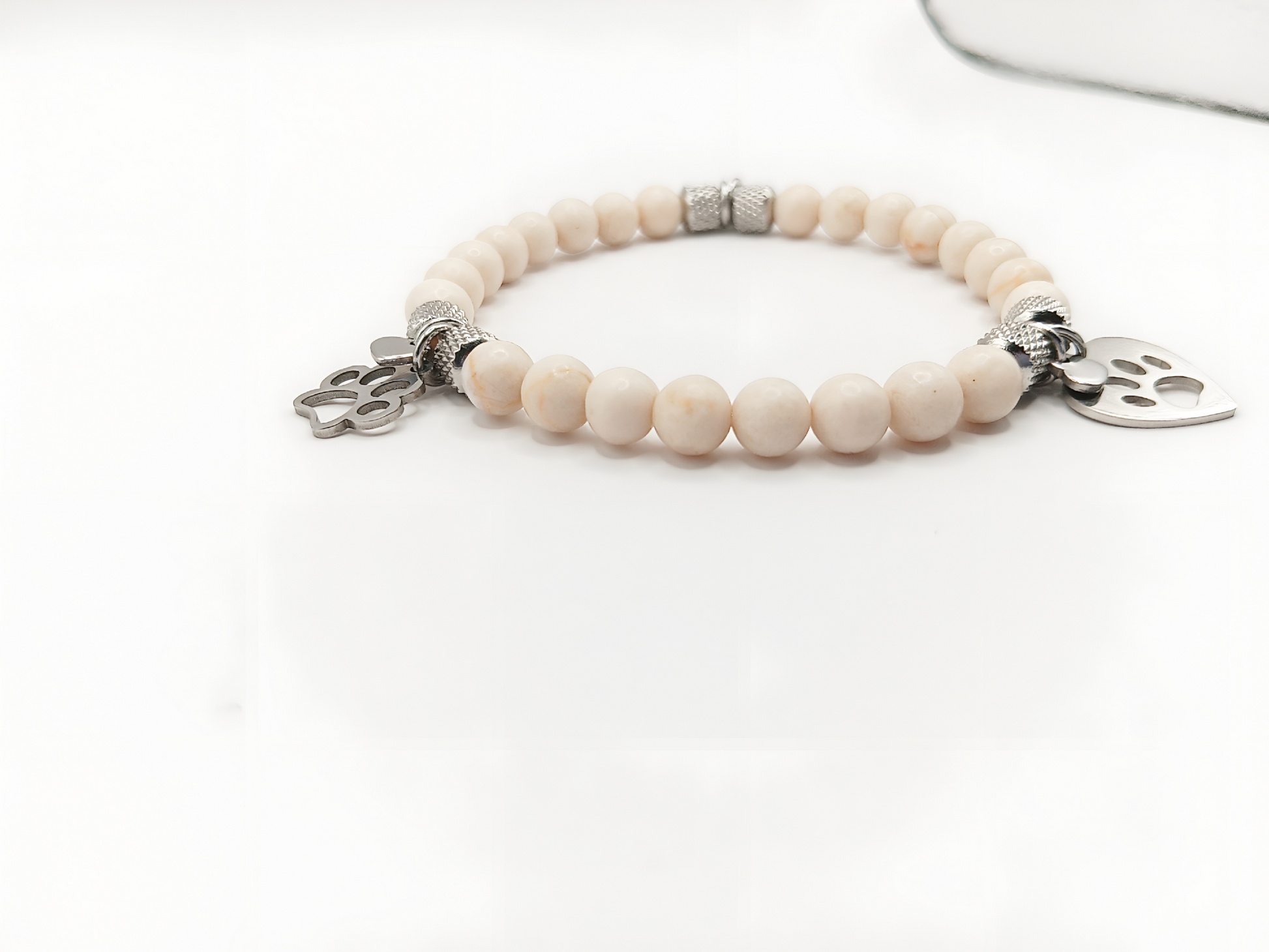 Bracciale perle in pietra fossile lucido bianco